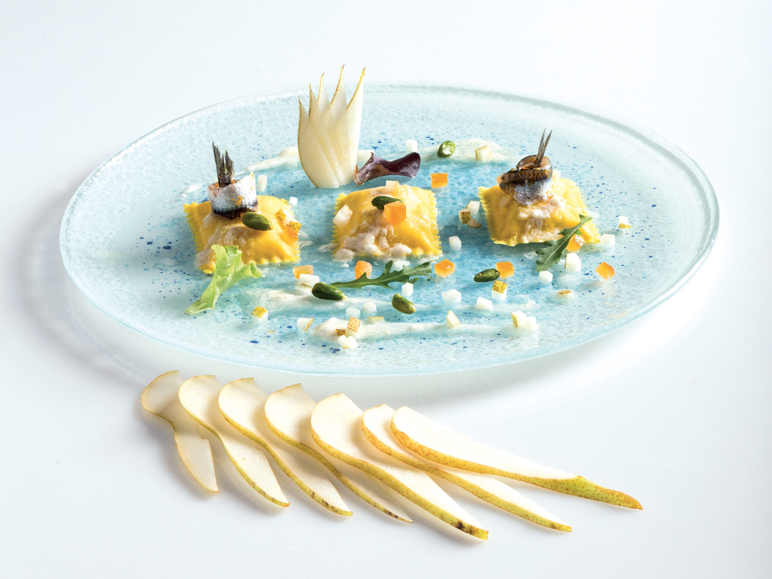 INGREDIENTI per 10 persone 30 Bauletti con ricotta di pecora e pistacchi di Sicilia Divine Creazioni Surgital g. 500 di burro g. 100 di distillato di pera g. 300 di pera Wiliams 10…