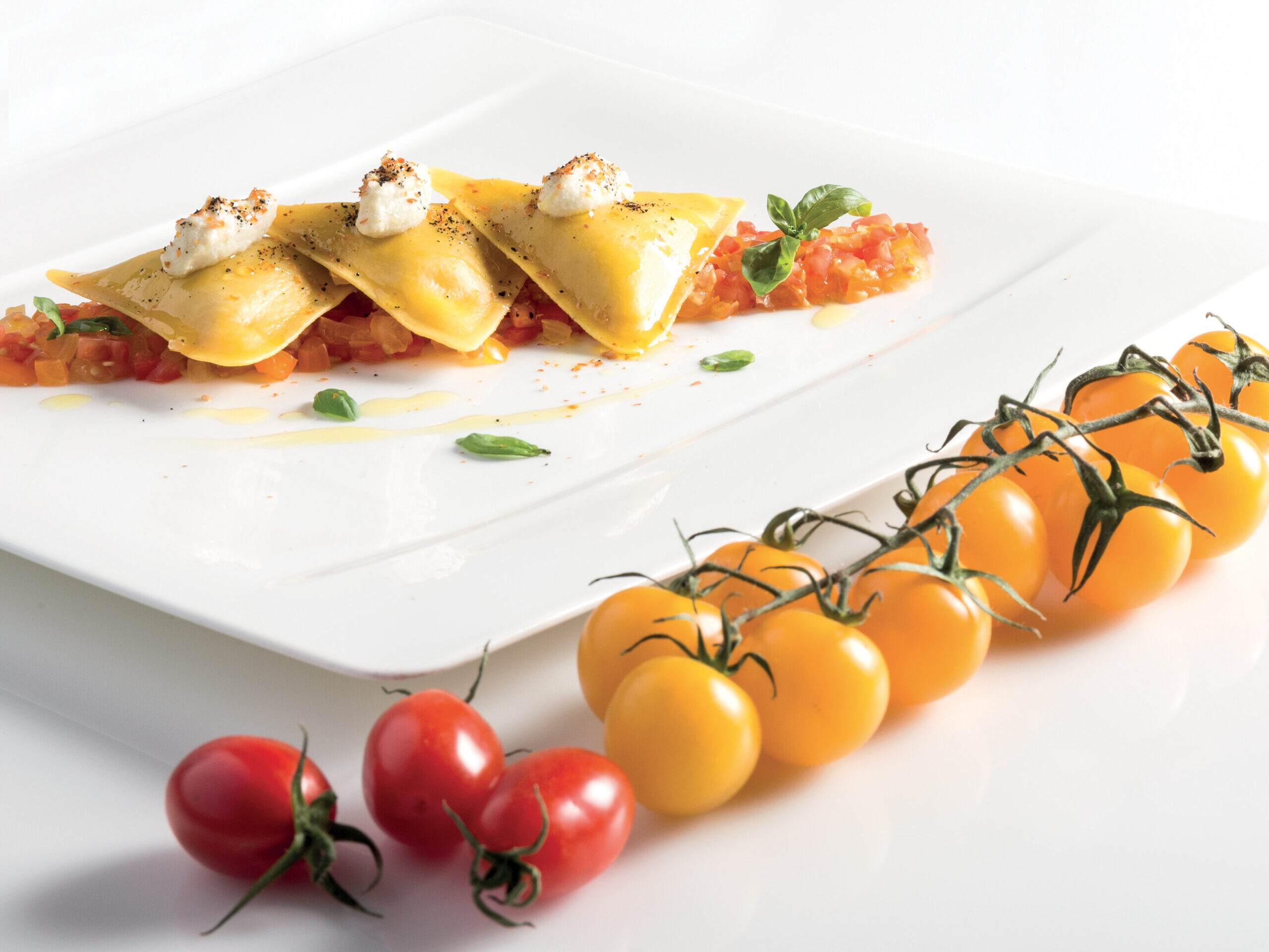 INGREDIENTI per 10 persone 30 Triangoli al pesce spada Divine Creazioni Surgital ciliegino Pachino datterino arancione ciliegino lemon g. 50 di olive g. 50 di pomodoro secco g. 60 di albume g. 100…
