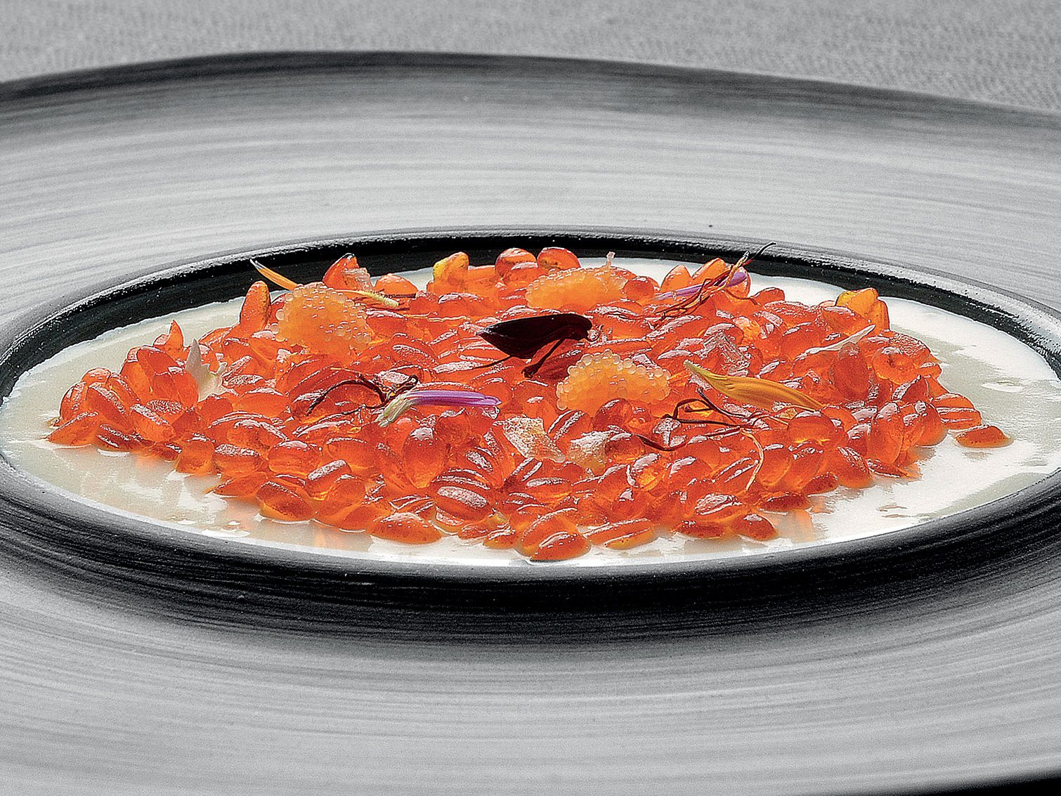INGREDIENTI per 4 persone g. 100 di acqua di zafferano ottenuta con infusione di g. 2 di zafferano g. 2 di agar agar g. 80 di cavolfiore g. 100 di burro di malga…