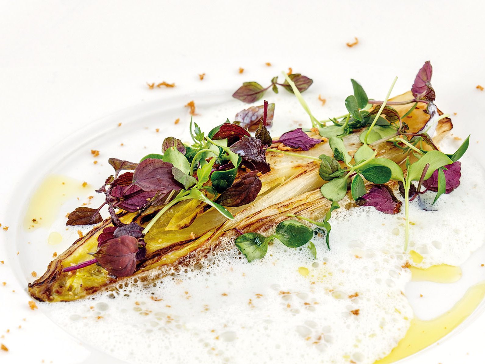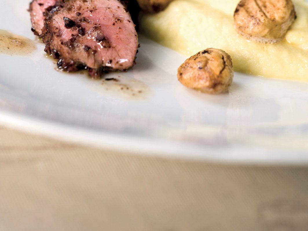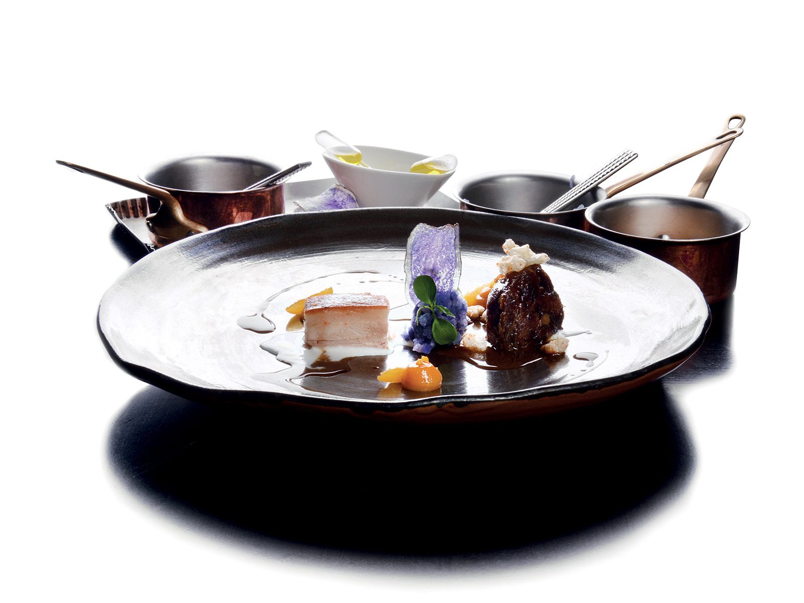 Ravioli di zucca, testina di maiale, prugne fermentate e amaro del Cadore