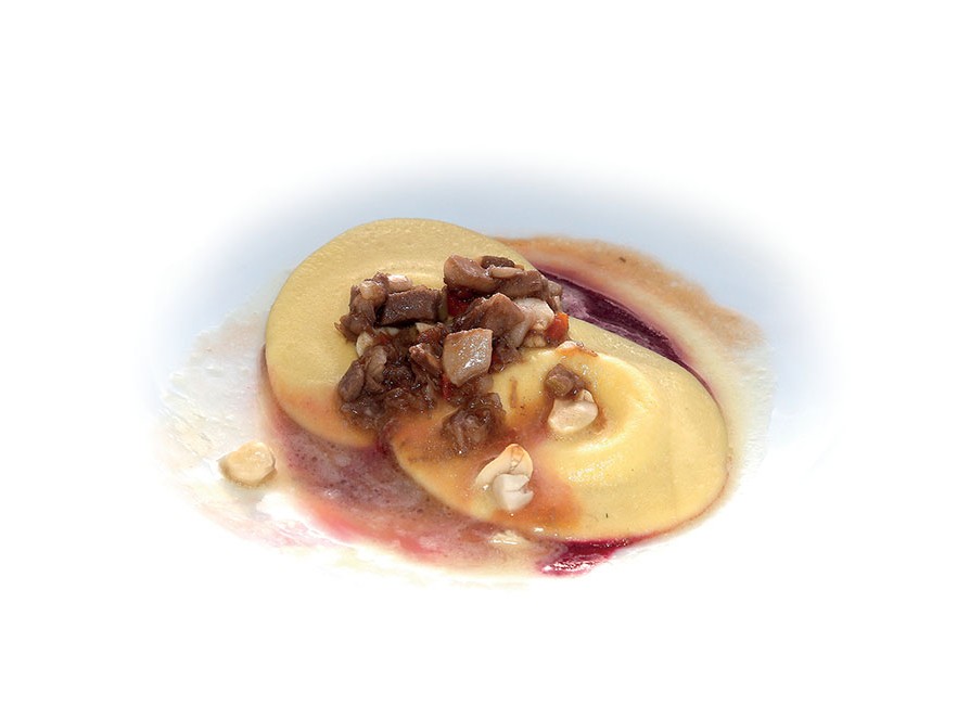 INGREDIENTI Per il tortello: g. 100 di semola, g. 100 di farina ‘’00’, g. 100 di uova intere. Per il ripieno al caprino: g. 100 di caprino fresco, g. 5 di cioccolato bianco,…