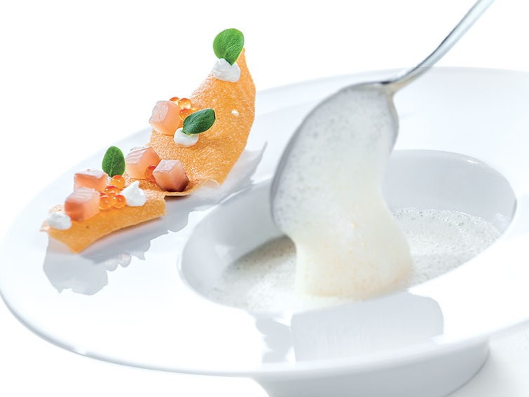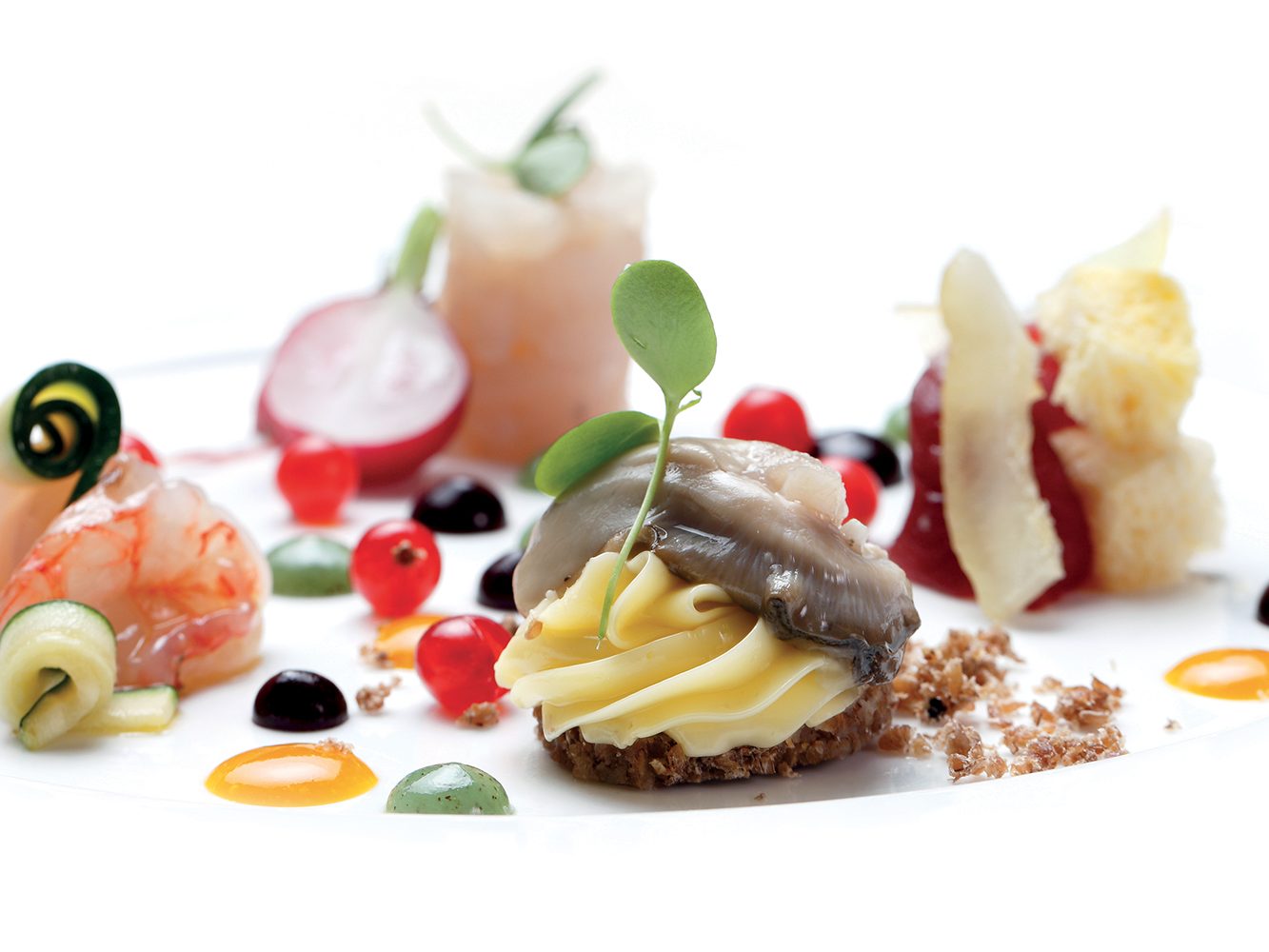 INGREDIENTI per 4 persone 20 Scrigni ripieni agli scampi Divine Creazioni Surgital, 2 o 3 pastinache, g. 80 di burro, g. 50 di panna, 28 uova di trota, g. 50 di foie gras…