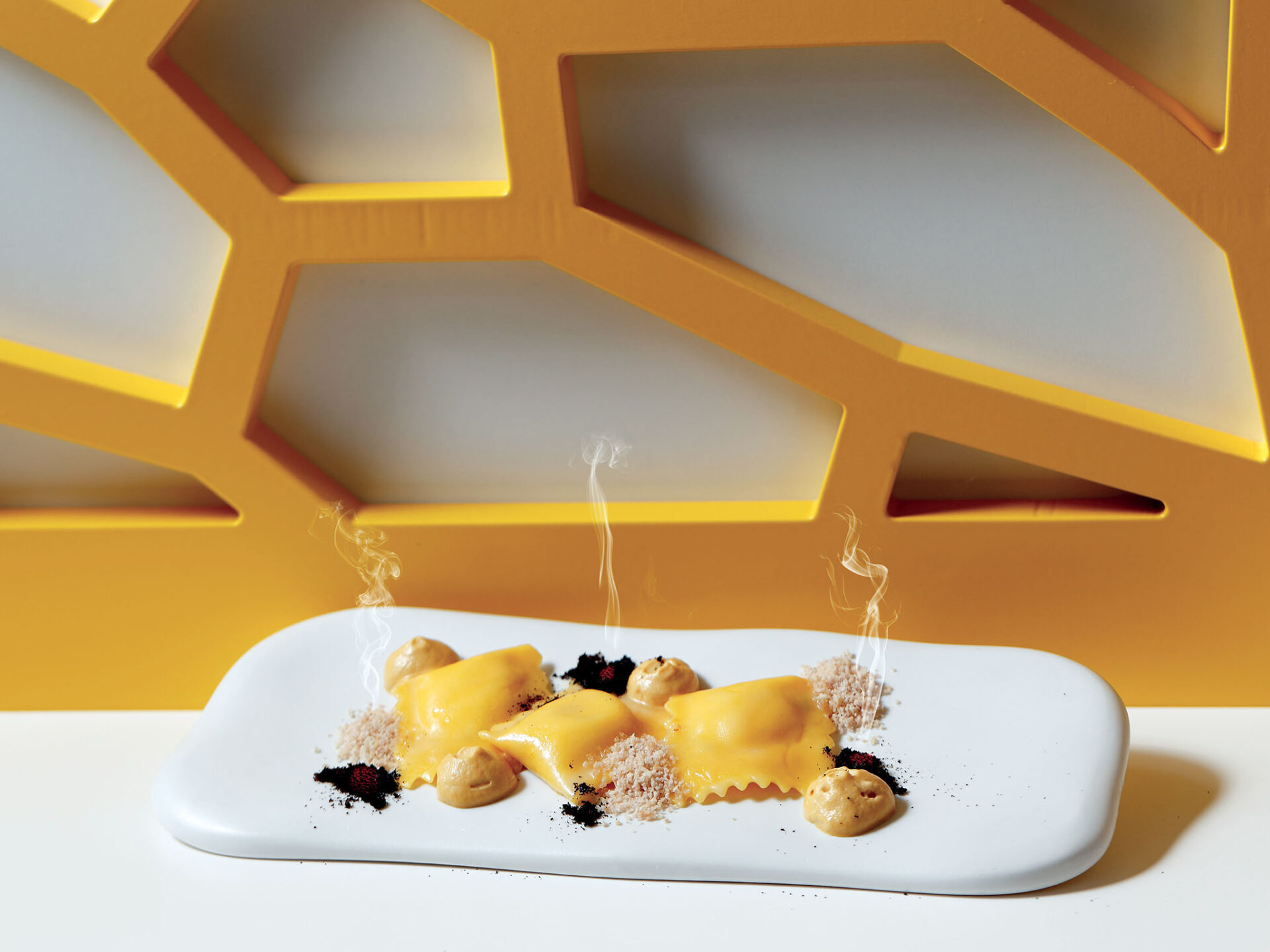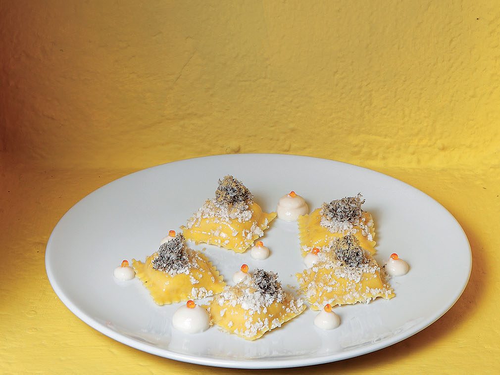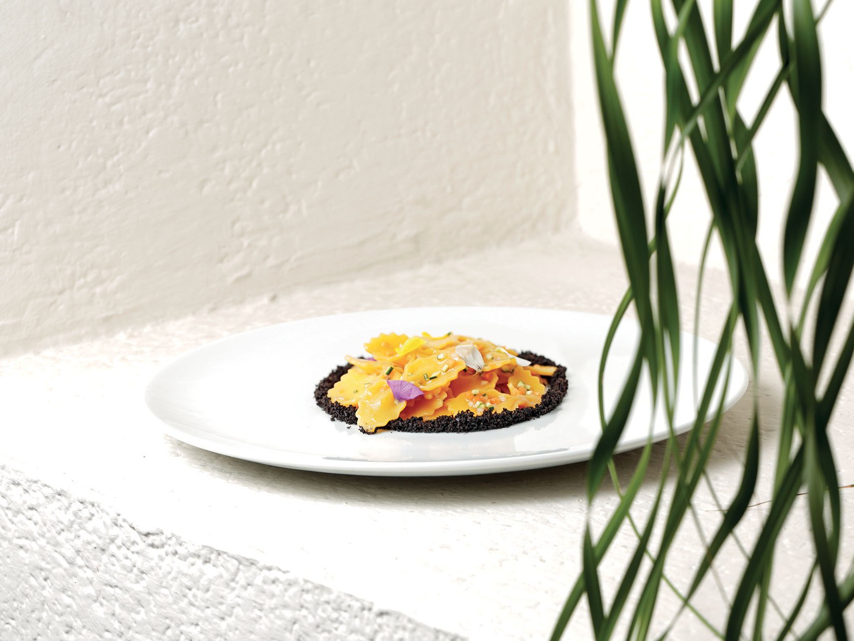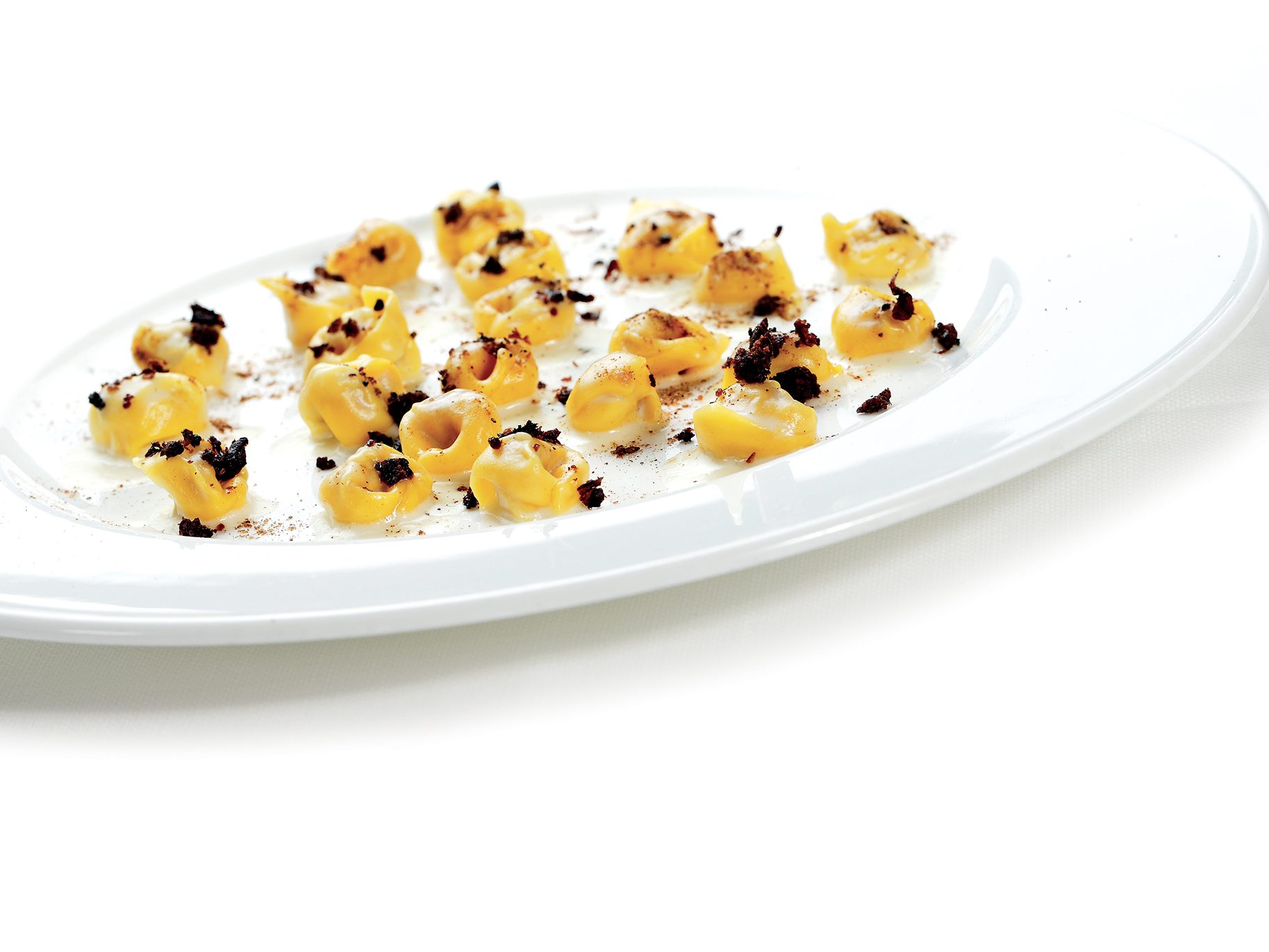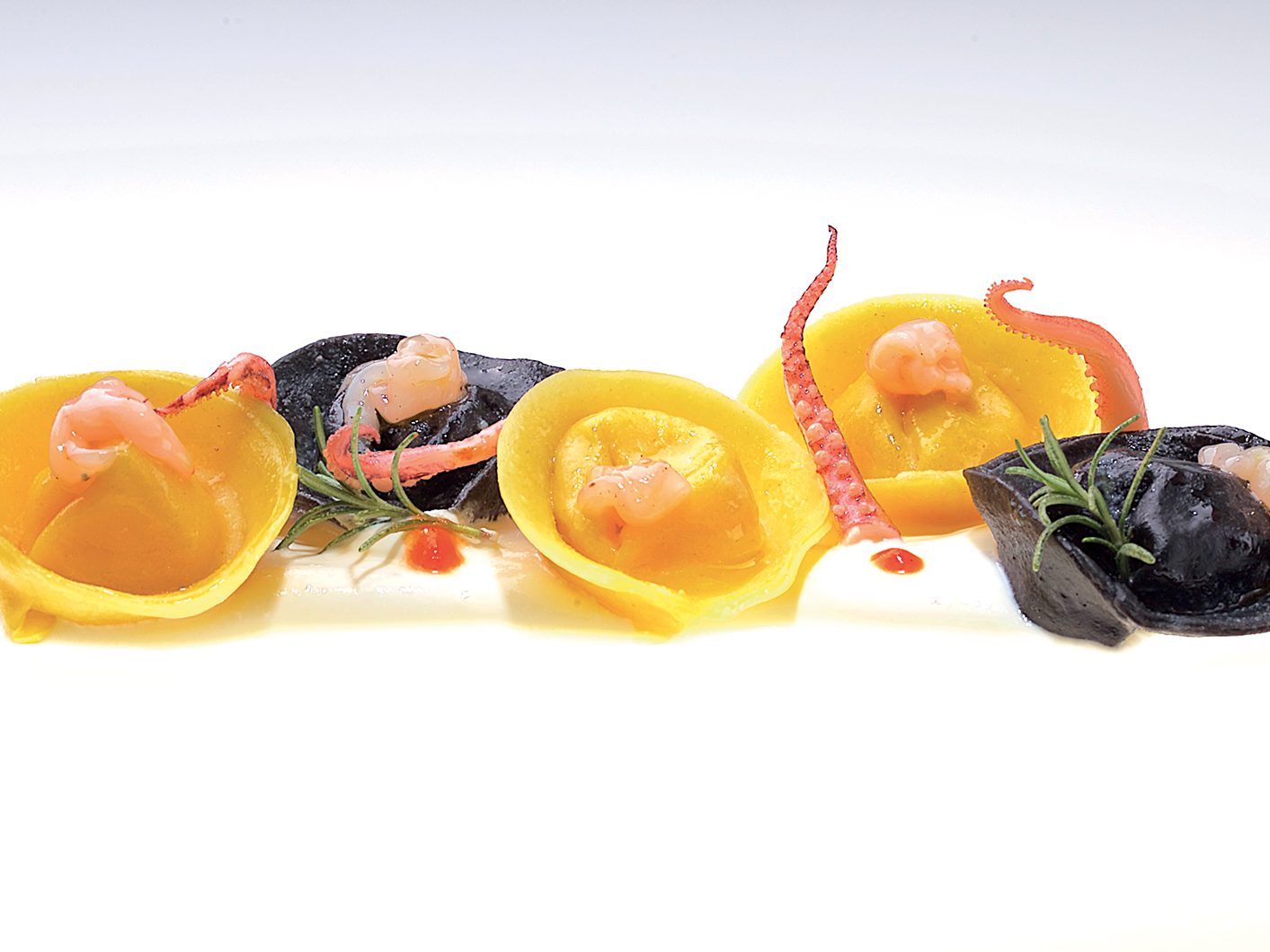 INGREDIENTI per 12 persone Per la pasta all’uovo: g. 75 di semola di grano duro, g. 175 di farina 00, g. 180 di tuorli d’uovo. Per la pasta all’uovo al nero di seppia:…