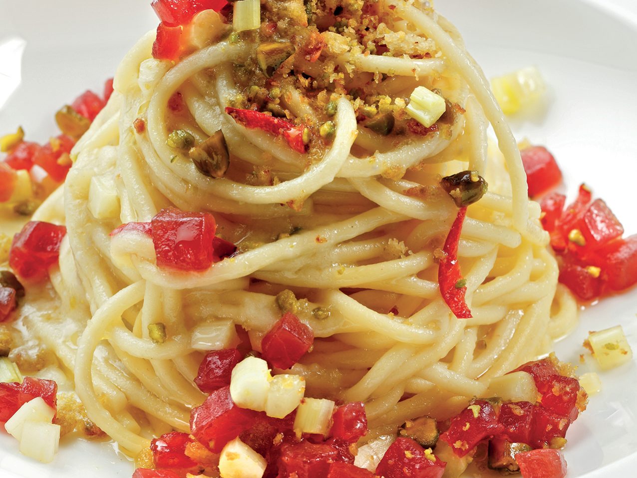 INGREDIENTI per 4 persone g. 320 di spaghetti grossi Benedetto Cavalieri (Gemma madre), 4 cucchiai grandi da minestra di olio evo del Garda, 4 spicchi aglio rosso di Cervia, 1 peperoncino rosso calabrese…