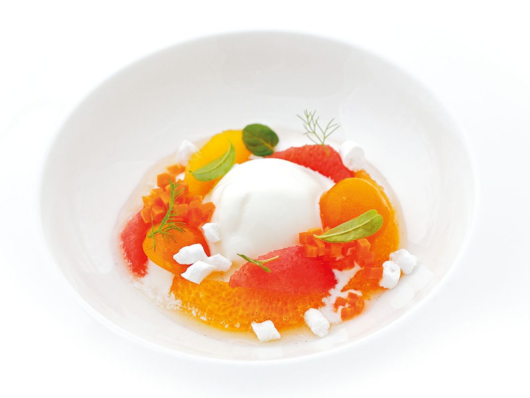 Insalata di agrumi e carote con gelato alla lavanda