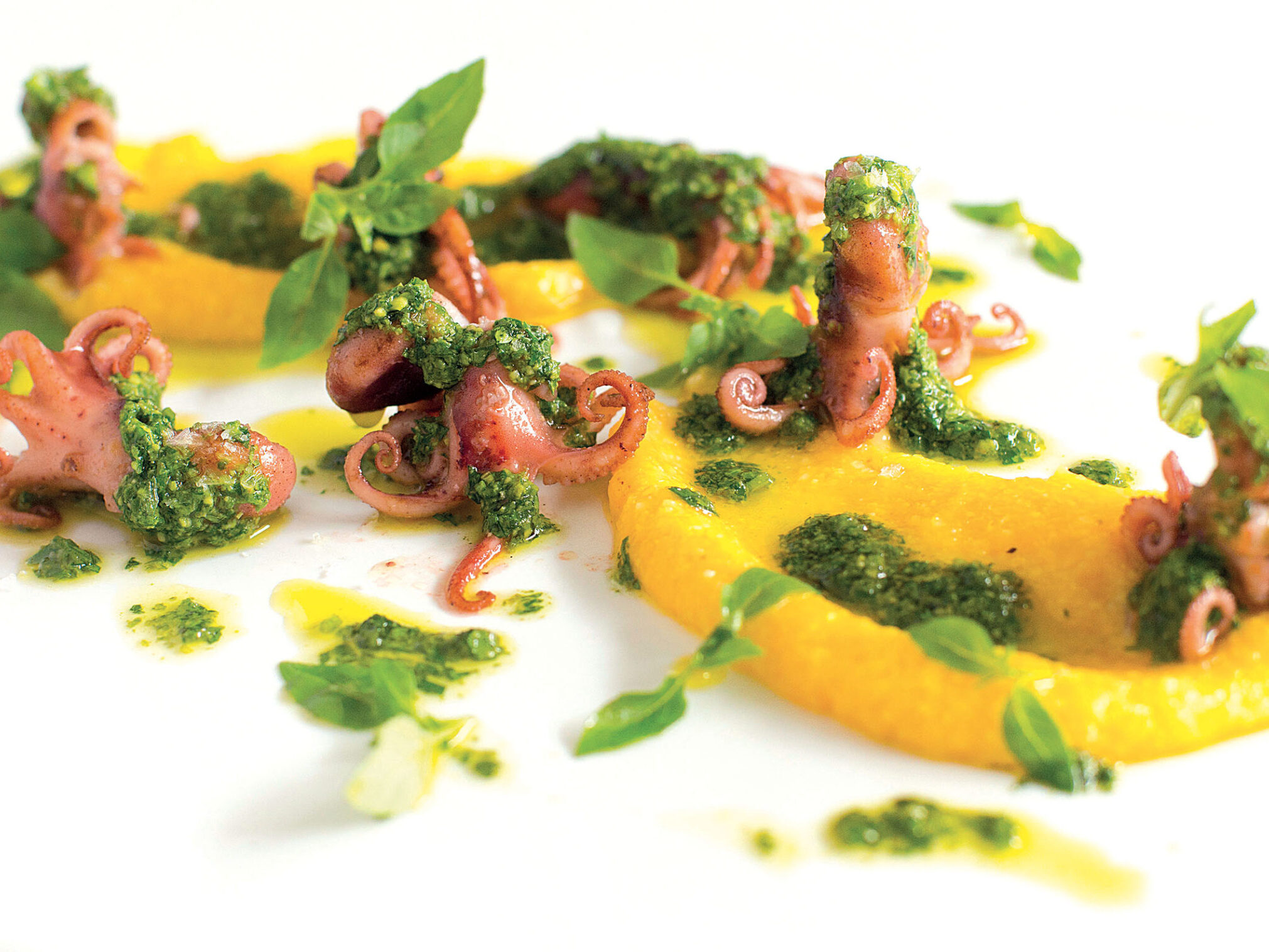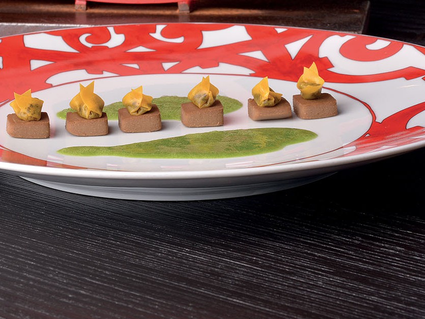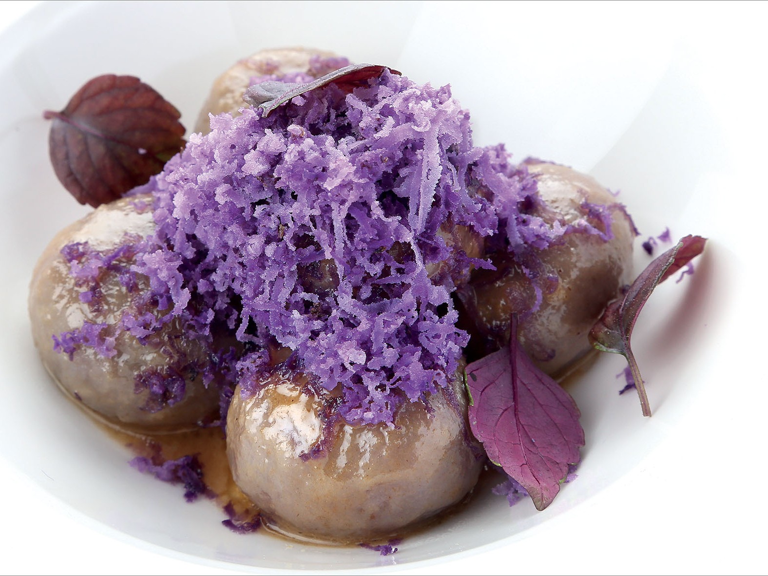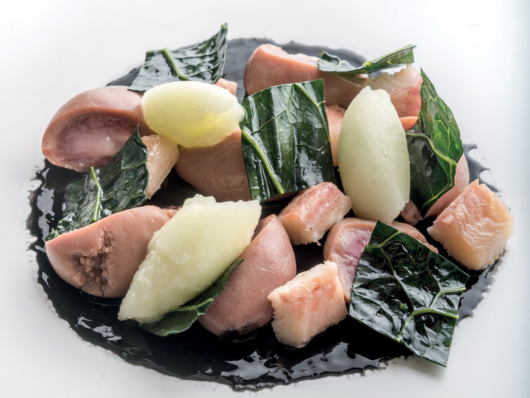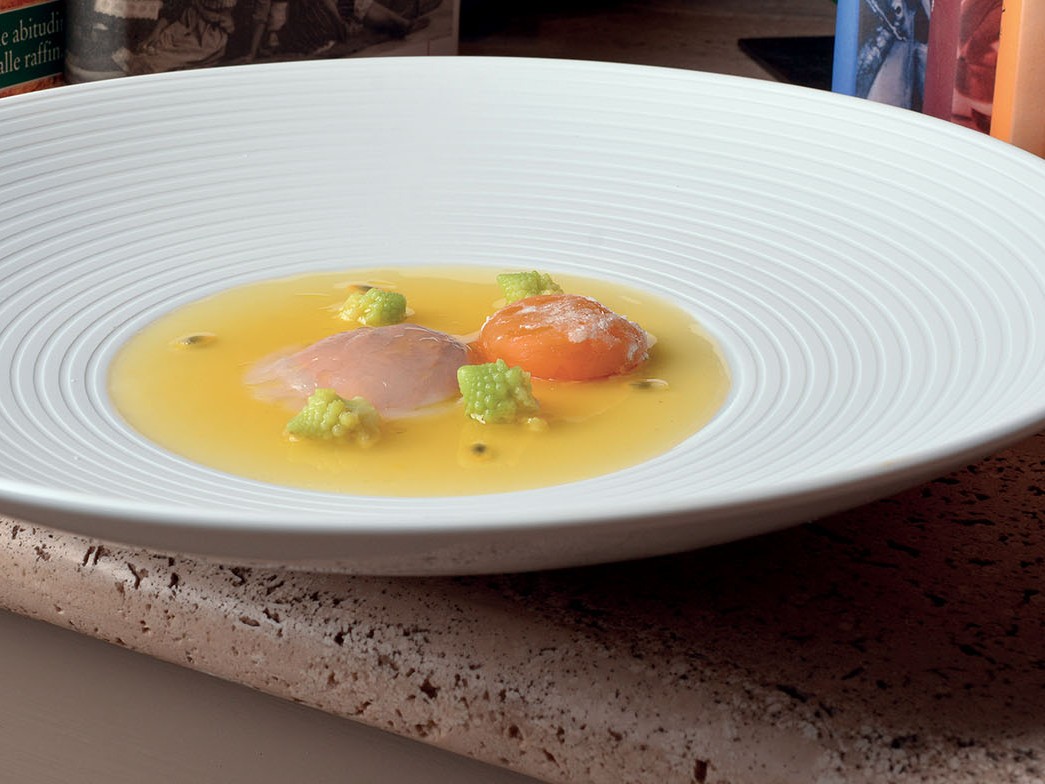 Gnocchetti crema all’aglio nero, ricci di mare, crumble al nero di seppia, pomodorini semisecchi e tartufo