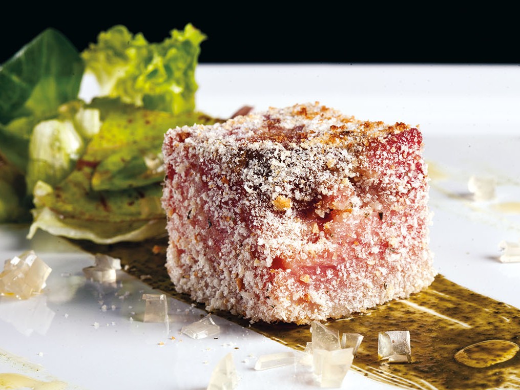 INGREDIENTI g. 320 di carne di fassona piemontese magrissima g. 20 capperi g. 60 di maionese fatta in casa olio extravergine d’oliva di Brisighella erba cipollina sale di Cervia chips di pane toscano…