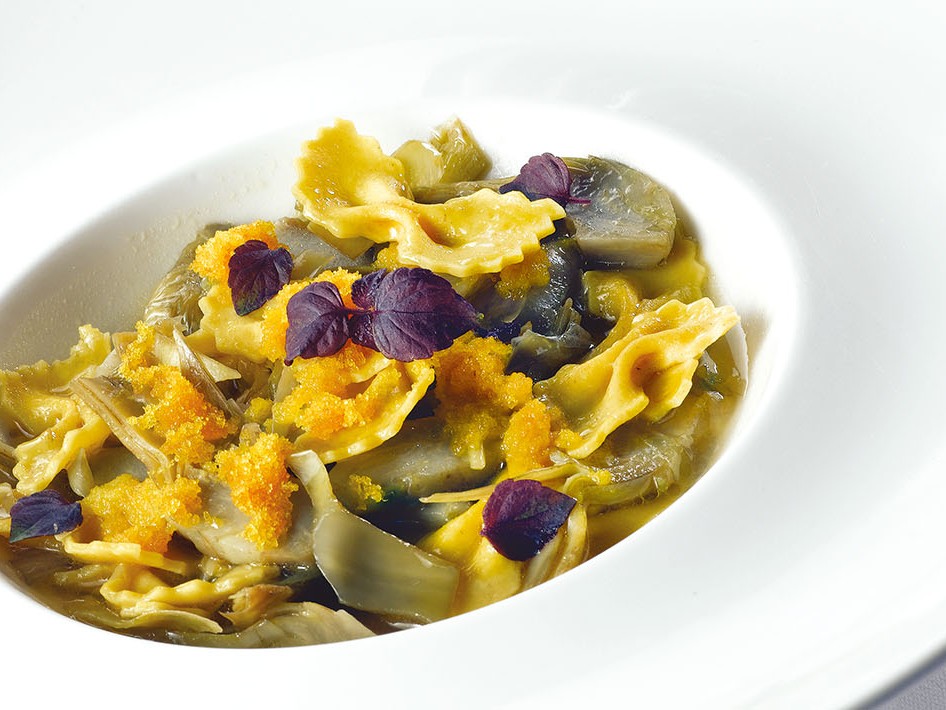 INGREDIENTI per 4 persone g. 320 di Strichetti all’uovo DIVINE CREAZIONI SURGITAL 6 carciofi cipolla sedano e carote aglio in camicia olio extravergine d’oliva sale e pepe q.b. bottarga di muggine q.b. Preparazione…