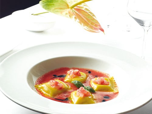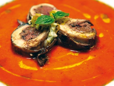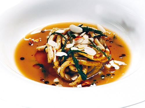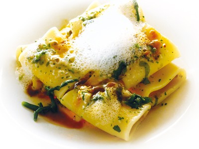 INGREDIENTI per 4 persone g. 300 di paccheri Verrigni, g. 50 di alghe di mare affinate, 5 ostriche concave, mezza cipolla di Tropea tritata, lecitina si soya q.b., brodo di pesce, polpa di…