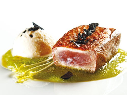INGREDIENTI Petto d’anatra cotto sottovuoto a bassa temperatura per 8 ore a 46°C, poi rigenerato a fiamma viva. Gelato di pecorino composto da g. 200 di pecorino, g. 200 di panna, g. 50…