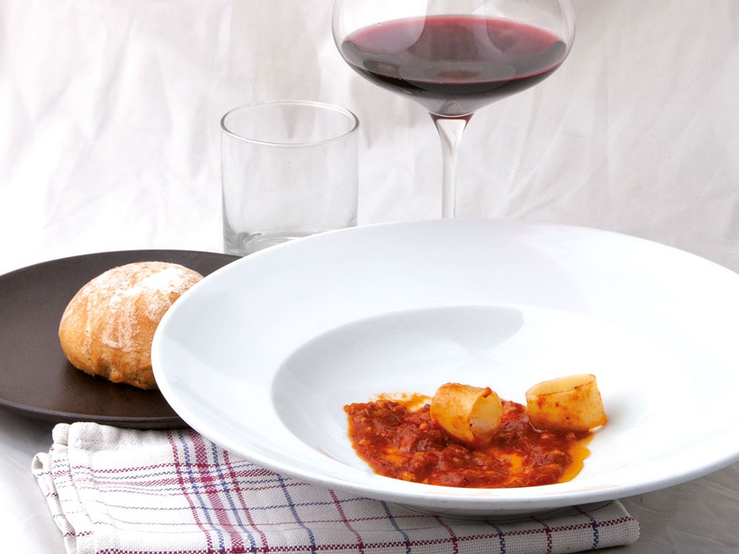 INGREDIENTI g. 50 di calamarata, 1 mestolo di salsa amatriciana, 4 pagnotte piccole di lievito di pasta madre. Lessare la pasta al dente seguendone i tempi di cottura. Condire con l’amatriciana e servire…