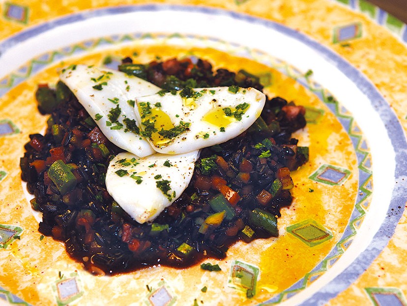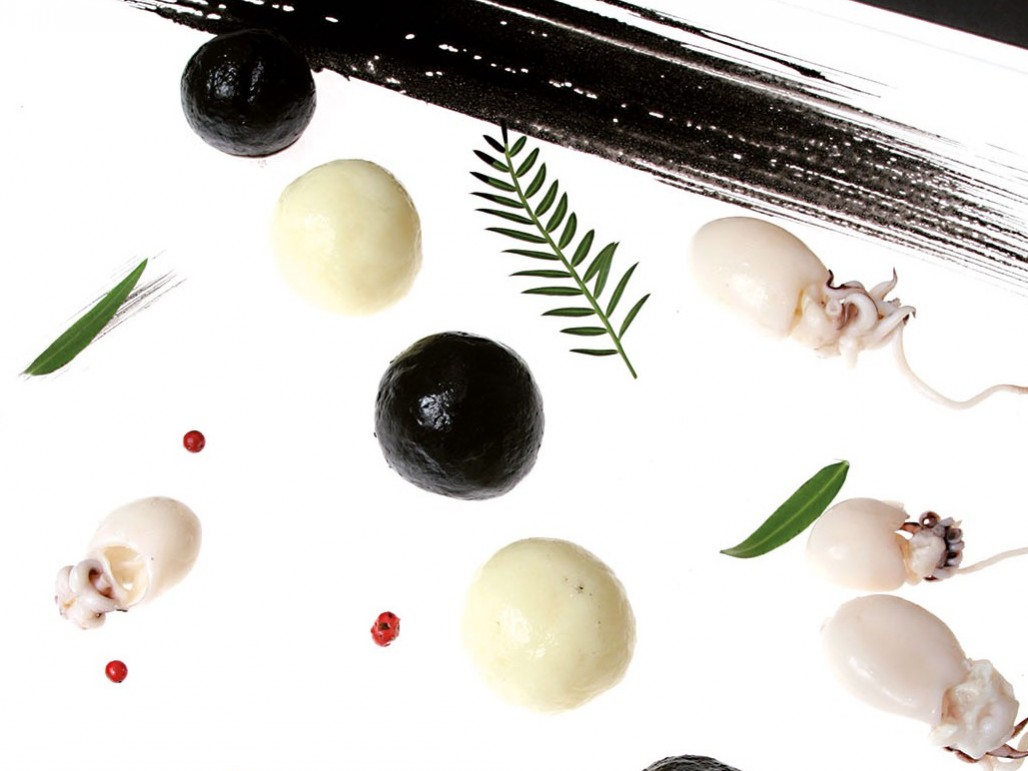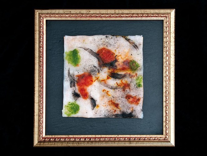 INGREDIENTI 2 calamari di g. 700 cadauno, pistilli di zafferano, carbone di melanzane, paprika, sale. Pulire i calamari, privandoli delle pellicine che hanno su ambo i lati. Batterli con l’aiuto di un mattarello.…