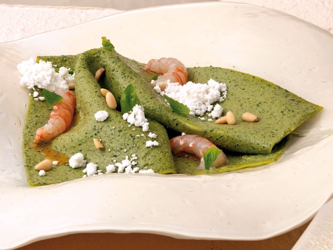 INGREDIENTI 18 tuorli d’uovo, g. 100 di spinacini Frullare i tuorli con gli spinaci. Impastare assieme alla farina. Realizzare un panetto di pasta e lasciarlo riposare per mezz’ora. Stirarlo a forma di quadrato.…