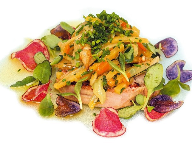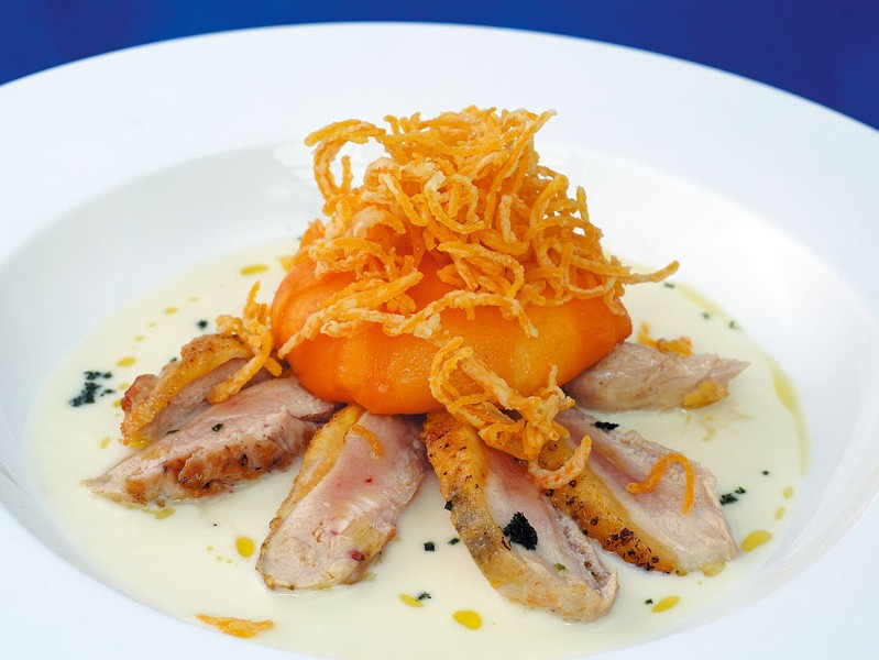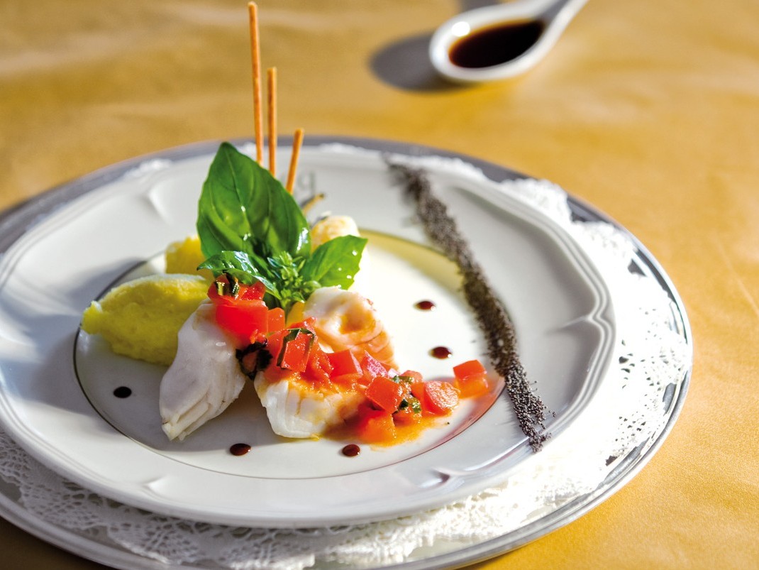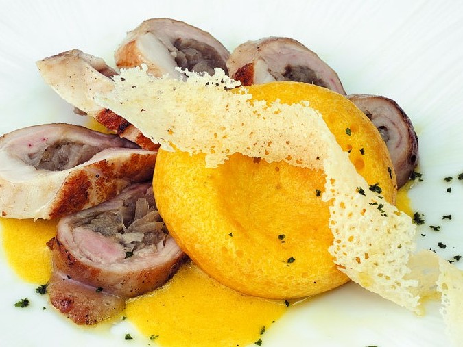 Lucioperca in guazzetto con quenelle di polenta bresciana