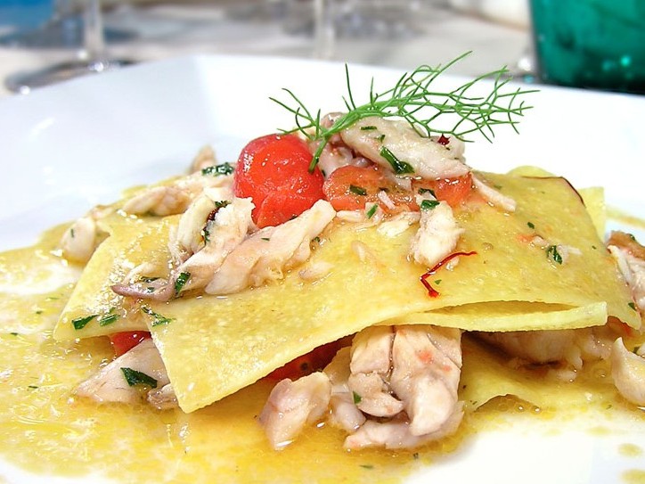 Ingredienti per 4 persone g. 300 di filetto di gallinella, g. 500 di pomodori rossi, g. 500 di semola di grano duro fine, g. 175 di acqua, g. 100 di farina, 1 bicchiere…