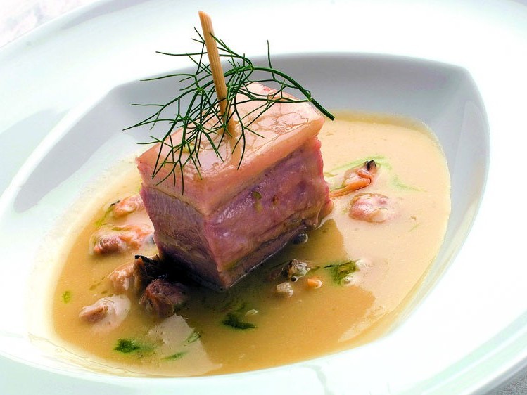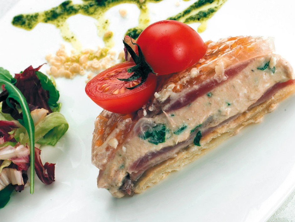 Ingredienti Kg. 1 di pancetta di maiale, kg. 1 di ventresca di tonno, g. 300 di arselle, 1 rametto di erba cedrina, 1 mazzo di prezzemolo, 1 testa d’aglio, 1 bicchiere di vino…