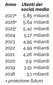 Nel corso degli anni, il numero di utenti sui social è cresciuto in maniera impressionante, con un trend che sembra destinato a continuare.