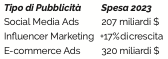 Nel 2023, la spesa globale in advertising online ha raggiunto 720 miliardi di dollari, con una quota sempre più rilevante destinata ai social media. L’aumento della spesa pubblicitaria sui social indica che le piattaforme sono viste sempre più come strumenti fondamentali per il marketing digitale. In particolare, Facebook ha aumentato la sua portata pubblicitaria globale di oltre 200 milioni negli ultimi 12 mesi, registrando una crescita annua del 10,5%. Anche LinkedIn, Snapchat, WeChat e Pinterest hanno visto una crescita costante del numero di utenti, dimostrando che la diversificazione delle piattaforme social sta diventando sempre più importante per brand e aziende.